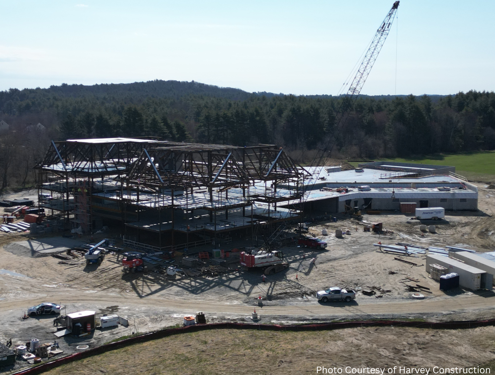 Construction of the municipal complex began in fall 2022, with TFMoran providing structural solutions for a facility that houses the Sheriff’s Department and Emergency Dispatch Headquarters, Department of Community Corrections, County Attorney’s Office, County Commissioners’ Offices, and the Registry of Deeds. The building also includes a 2,750-square-foot, 131-seat multi-use auditorium, secure operational spaces such as a sallyport, and infrastructure supporting a multi-megawatt solar farm that advances Rockingham County’s sustainability goals.